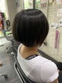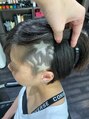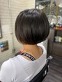 肩くらいの長さだったのを、バック刈り上げなしのショートボブに、左サイドは刈り上げてお星さまを流れさせました☆キラッ