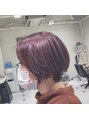 襟足をしっかりピタッと収まるようにカットし、トップには柔らかい動きが出るように軽さをプラスしたスタイルです♪カラーは前回入れさせていただいたハイライトを利用したパープルグレージュです♪