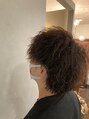 全体的にアシンメトリーにカットし、ツイストパーマを全体的に当てて、Waxでスタイリングしたスタイルです。