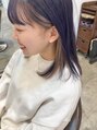 全頭に2回ブリーチをしたお客様耳周りの内側をもう一度ブリーチ後ホワイトベージュに♪全体は暗めながらにも透明感のあるコバルトブルーに!