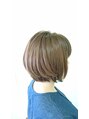 やや前下りの丸みを残したグラボブ バックに奥行を出し フンワリ感アップで 骨格カバー!丸みのあるひし形にし仕上げて!カラーは ベースを ブルーアッシュのクレージュサイド下に ダーク色でインナーカラーでシャープさを