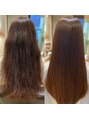 髪質・ダメージ・履歴・年齢、同じお客様でもその時々で髪の毛の状態が違います。それに対応すべく適切な薬剤をその都度要事生成し、髪の毛に負担の少ないアイロンワークで柔らかく、綺麗に伸びるストレートを心がけています。是非ご体感下さい!