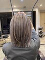 シルバーベージュのバレイヤージュ。筋感は弱めのナチュラルなデザインです。ブリーチの回数は3回必要になります。このスタイルを希望の方は惣田を指名の上ご予約下さい。