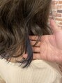 淡い透明感と、外国人のような雰囲気を纏えるシアーグレージュ♪髪を軽く見せてくれたり、肌のツヤ感も高めてくれる効果もあります♪襟足の部分は前回のブリーチの履歴を活かしてネイビーグレーのインナーカラーで遊びを取り入れています☆