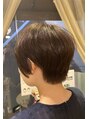 前下がりのショートカット!耳に髪の毛をかけるとスッキリみえます!トップはふんわり感がでるようにして女性らしさを残すように!からはカーキブラウンでくすませて秋冬仕様にしました!