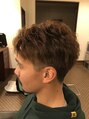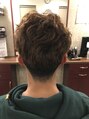 前回かけたパーマを活かしつつ、やや前下がりのセンターパートに仕上げました。