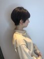 ダークトーンで大人フェミニンショート。暗めにピンクをほんのりのせて色気も加えて。