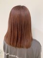 これからの季節にぴったりなピンクベージュカラー☆ブリーチ履歴もあるので透明感もあって室内と屋外、光の当たりかたで違った見え方になります。緑っぽく色落ちがしないのもいいところ♪