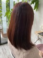 ベースは重めで揃えておさまりを良くしたカットをさせて頂き、カラーは9レベルのレッドヴァイオレットで染めました。仕上げのTOKIOトリートメントでサラサラになりました。