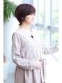 ショートまで短くなく少し長さを残し、全体にレイヤーを入れたミディアムスタイルです。トップはふんわり、自然と襟足は外ハネになるようにしました。
