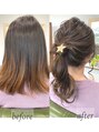 ブリーチなしのハイライトカラーをしました!毛先が、ご来店時グラデーションになっていたので、生かして今回はハイライトをして一気におしゃれに*ハイライトを入れることでアレンジも一気におしゃれ上級者に★