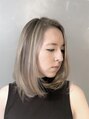 鎖骨ギリギリに設定した前下がりのボブ、毛先の動きを出しやすくドライカットで軽さのバランスを取ります。14トーンのハイライトを入れ チャコールアッシュのベースで2アクションカラーします。
