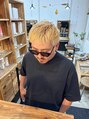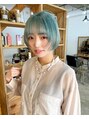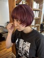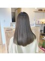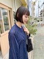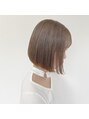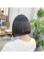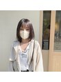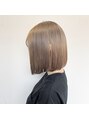 ぱつっとラインを残した切りっぱなしボブ。間引くように量を減らし毛先には厚みを残して。カラーは柔らかいグレーベージュ。重くならないように透明感を出して。