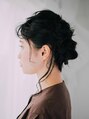 くるっと強めなバングのカールが印象的なアレンジスタイルです。