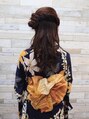 ゆるくパーマをかけて、そのままウェーブスタイルに仕上げました。グレイカラー、暗すぎないウォームブラウンです。