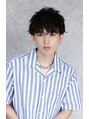 モードなツーブロックスタイル。ツイストパーマで毛先を逃してランダムにかけて毛先に動きが出るように。前髪の長さでばっくの長さを設定して、サイドのラインを強調したスタイル。サイドと襟足は刈り上げて個性的に。