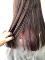 インナーカラーはレッド系、全体はパープル×ブラウンの組み合わせ。ちらりとお洒落をのぞかせて。