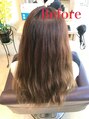 全体的にブリーチ履歴のある髪にハイダメージ毛用の、縮毛矯正をかけています。通常の縮毛の、5倍のトリートメントを使い髪の負担を最低限に抑えています。ブリーチorハイダメージ毛への矯正はクセの強さ、ダメージ具合によりできない場合もあります。