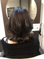 低明度のラベンダーアッシュです。ベースも明るいので透明感がかなり出ます。カットは肩につくくらいのレイヤースタイルを裾は外ハネ、トップは内巻きに仕上げています。