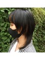 マッシュベースのウルフカットですカラーは黒ベースにミルキーベージュのインナーカラー