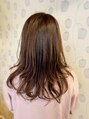 ゆるふわワンカールで、大人女性らしいスタイル。少しレイヤーを入れてくびれふんわり感を出してます。色は、グレージュカラーでやわらか雰囲気にしてます♪