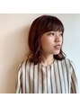 ラフなミディアムヘア。下は外ハネ、表面はラフに巻いてます。カラーはしっかり色味が出せるように、全体にハイライトを入れています。暖色カラーで艶っぽく、おしゃれな印象に。