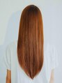 ナチュラルなロングストレートスタイルです!!ロングだと重く見えやすくなりますが、レイヤーを入れてカットで軽くみせてくれます。また、明るめのオレンジカラーでお顔の印象も明るくします。