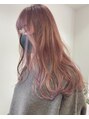 ケアブリーチで1度ブリーチした後にピンクベージュをオンカラー。カットは重めロング。