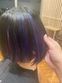 インナーカラーシリーズ!元々インナーカラーをしていたのでブリーチ部分を増やして、ビビッドなピンク、ネイビー、バイオレットをランダムに入れました♪表面もただのブラックではなくアッシュ系カラーを濃いめに入れて暗く見えるように仕上げました!