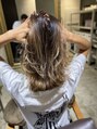 ■大人気のバレイヤージュ!!中間から毛先を明るくして、コントラストをつけてデザインカラー。グレージュをベースに毛先にいくにつれて明るく仕上げました!! くすみを最大限いかせるスタイル☆巻き髪にも相性◎