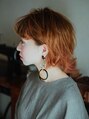肩につかないショートボブ★大きく巻いた前髪がキュートに!!カラーは暗くなりすぎない明るめオレンジ系で、耳かけスッキリみせるのもポイントです!