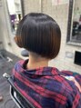 肩まで伸びていた髪の毛を、サイドとバックを刈り上げて前下がりボブに仕上げました。