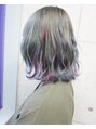 アッシュグレー×ユニコーンカラーハイライト/ブリーチ2回ベース