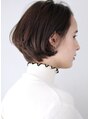 前下がりのショートボブスタイルです。顔がシャープに見えるようにひし形をイメージしてカットしています。女性らしい印象に見えるように毛先の方にパーマをかけたスタイルです。スタイリングが苦手という方にもオススメのスタイルです。