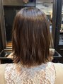 肩につかない切りっぱなしスタイル。アッシュベージュの柔らかい色味はスタイリングした時により透明感が増して見えるので髪質が硬い人にもオススメ!!