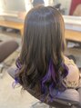 青と紫、2色のカラーエクステをインナーに取り付けて、混ざり合う部分も含めると3色に見えるスタイル★ハロウィンにぴったり!