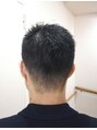 今まで一番に短いスタイルに変身!仕事で忙しく時間がなくなったということで、一見坊主に見えますが、毛先を立ち上げ爽やかになりました。