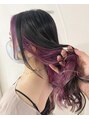 フェイスフレーミング×インナーカラー。左右で色を変えてます。ベースは3回以上のブリーチです。左はパープル。右はブルーをカラー剤で使ってます。
