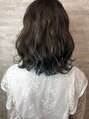 全体の色はブルーアッシュ、フォギーアッシュ、ベリーブルーなど使って柔らかなグレージュカラーに。そしてインナーカラーはブリーチ2回は必須のネイビーブルーです。かわいい◎