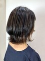 白髪染めはせずに白髪を目立たなくさせていきたいとの事で、アッシュのお色味でこめかみから下のインナー部分は太めのハイライト、表面は細めにハイライトを入れて白髪と馴染むようにさせていただきました。スタイルは首元でくびれるウルフスタイルです。