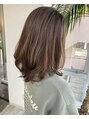 細かなハイライトで透明感を出したアッシュベージュカラー。カットは毛先にレイヤーを入れて、より動きと軽さを使っています。