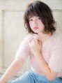 ★お気に入りスタイルは【ブックマーク】を★頬にかかるカールがやわらかな印象を醸すフェミニンボブ。高めの位置からパーマをかけることで、軽くてエアリーなゆるふわ感を演出。少し短めの斜めバングでカジュアルダウンして、ガーリーな妹系の愛され顔に☆