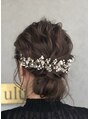 ゆるふわシニヨン風アレンジトップはしっかり立ち上がりを出しながら、ウェーブにし緩さを出しています。生え際から後毛を出すことによってよりこなれ感とオシャレさがさらにUP!!