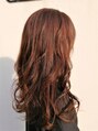 暖色系カラーの肩甲骨下のロングヘアーです!!ランダムにまいて濡れ髪セットしてからゴムだけで仕上げた編みおろしスタイルです!!ラフなアレンジにも飾りでドレスアップして二次会やパーティースタイルにもなります!!