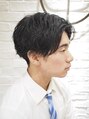サイドはツーブロック、後ろは刈り上げ、トップは耳にかかる長さで全体に動きをつけたパーマで自然なセンターパートにしてます!20代はもちろん30代40代と幅広くお洒落にします!スーツにも合うのでビジネスマンにもおすすめ!