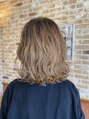 インナーカラーにアクセントグリーンにして、全体はカーキ強めで柔らかめのカラーにしています。ブリーチの部分は二回する方が透明感が出るカラーになります。