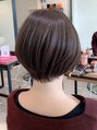 襟足スッキリショートボブ!30代40代50代の大人女性におすすめの髪型です。色味を楽しめる白髪染めで艶カラー!香草カラーでダメージ少なくオーガニックカラーも!ハイライトやリタッチもおすすめです。癖が気になる方は縮毛矯正のご相談下さい。