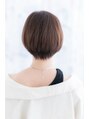 前下がりで輪郭をカバーして小顔見せ効果を狙ったナチュラルボブ。ダークトーンの潤いたっぷりツヤカラーで透明感を出し、男女問わず人気の好感度大の万能スタイルに。耳かけしてアシンメトリーにしたり、センターパートでクラシカルにしても大人かわいい。
