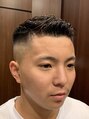 とても直毛だったので、アイロンパーマで癖つけてシルエットの収まり、セットのしやすさを重視したスタイルになります!直毛の人はマジでビビります!!スキンフェード/フェード/横浜/床屋/理容室/ショート/ツーブロック/メッシュ/バーバー/クロップ