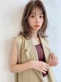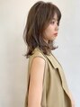 ミディアムにカットして、トップにレイヤーを入れてふんわりとくびれ感に。前髪はシースルーバング。カラーはフォギーベージュで艶感のある色味に。